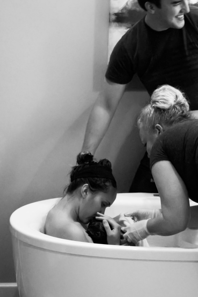 A week past my due date my water broke after midnight, but I wasn’t in active labor until after 6 pm that evening. We drove into the birthing center and got the music playlist and essential oils going, creating the worshipful and relaxing atmosphere we wanted. My sister who is also my doula arrived after about an hour, coffee and pizza in hand and all smiles. We hung the affirmation cards my tribe mamas made for me at my shower on a hemp string with clothespins pins and laid out the receiving blankets and baby clothes across the changing table for visualization. A tiny pink sheep outfit and extra soft plush blanket my mom and I had shopped for together just weeks before. I moved pretty constantly between positions until I settled into the bed in a side lying position. My midwife and home girl who saw me through the entire pregnancy was getting the bath ready as transition set in and I focused on my breathing and conserving energy as much as possible. Having had 2 natural births previously, I knew that transition would be the hardest part and the place where I would feel most stuck, scared and alone, so I prepared myself. This time, I embraced my husbands supporting hands and counter pressure instead of pacing. I closed my eyes and accepted the cold towel my sister pressed against my neck and another on my forehead. This time I was I little more needy and held my people a little tighter and they were there for me like they always are. I gave the side lying position, peanut ball and birthing stool each a good try before moving onto what was familiar. I found that switching positions and holding them for some good productive pushes seemed effective even though all I wanted to do was lie down and sleep. My sister and husband kept me moving around and I’m thankful. Once the bathtub was ready I climbed in for delivery and brought forth our third daughter, Clara Lucille, which means “light”. She is my light in a dark place. My husband’s smile overwhelmed the room again as well as joy and relief as I pulled her up onto my chest and thanked the Lord it was finished. It was finished at the cross, now and forever. All pain and fear have no place anymore. Only Jesus. And only this beautiful baby girl in my arms.
